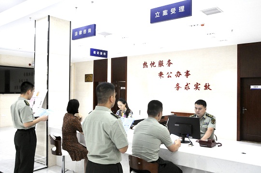 圖為法律援助律師在長(zhǎng)沙軍事法院訴訟服務(wù)中心值班接待軍人軍屬。(長(zhǎng)沙軍事法院供圖)