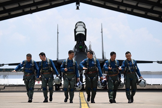 一次,邱麟輝駕駛戰(zhàn)機(jī)執(zhí)行警戒巡邏任務(wù)。面對抵近挑釁、咄咄逼人的外國軍機(jī),邱麟輝立即實(shí)施警告驅(qū)離,他用果敢的戰(zhàn)術(shù)機(jī)動作出有力回應(yīng),迫使對方改變航向遠(yuǎn)離而去。