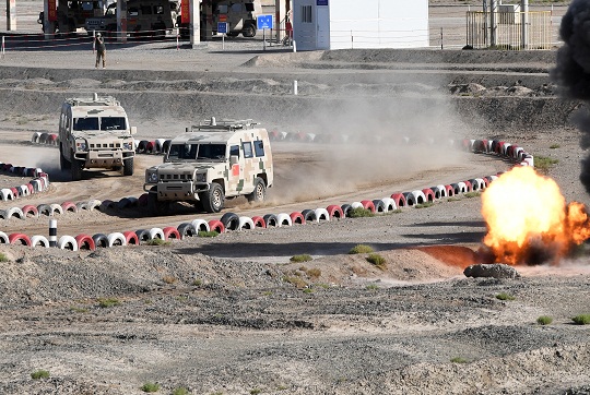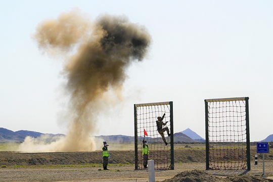 圖為中國(guó)陸軍參賽隊(duì)通過炸點(diǎn)路段。張永進(jìn) 攝