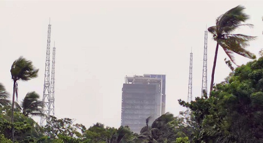 據(jù)悉,早在臺風(fēng)“獅子山”來臨前,發(fā)射場科技人員就開展專題討論,制定應(yīng)急預(yù)案,組織各系統(tǒng)崗位落實(shí)設(shè)備設(shè)施防臺風(fēng)措施,對室外設(shè)備進(jìn)行加固,加班加點(diǎn),提前完成了發(fā)射塔架回轉(zhuǎn)平臺打開、長征七號活動平臺進(jìn)入垂直總裝測試廠房避風(fēng)等大項工作,有效保證了臺風(fēng)期間發(fā)射塔架和活動平臺的安全。