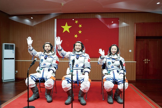 圖為神舟十三號航天員乘組出征。楊志遠(yuǎn) 攝