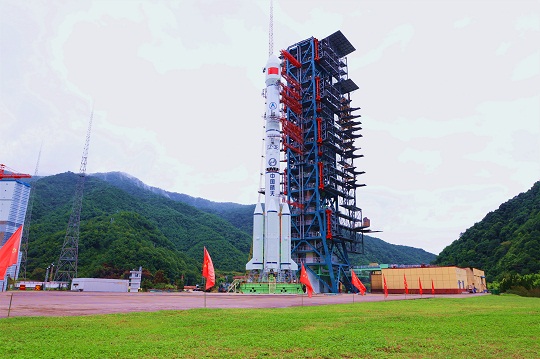 圖為長(zhǎng)三乙火箭托舉實(shí)踐二十一號(hào)衛(wèi)星。