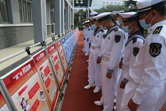 “憲法宣傳周”活動(dòng)期間,海軍部隊(duì)制作“身邊的憲法,心中的約束”系列普法產(chǎn)品,把憲法送到基層一線;指導(dǎo)各級(jí)按需普法、精準(zhǔn)施教,開展“發(fā)放一批普法書籍、開展一次線上法律咨詢、推送一套普法宣傳產(chǎn)品、組織一期法律知識(shí)授課”為主要內(nèi)容的“四個(gè)一”活動(dòng)。
