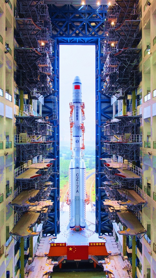 12月23日,中國文昌航天發(fā)射場,距離大海約800米的發(fā)射平臺上,高大挺拔的長征七號改遙三運載火箭劍指蒼穹。乳白色的箭體上,一面鮮紅的五星紅旗圖案格外醒目。