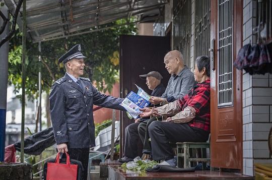 如今,年過(guò)半百的于伍生依然帶著工作時(shí)的“標(biāo)配”:一個(gè)手提袋、一本筆記本、一疊名片、一臺(tái)執(zhí)法儀、一支筆,走進(jìn)一街一區(qū)、一家一戶(hù)。