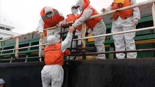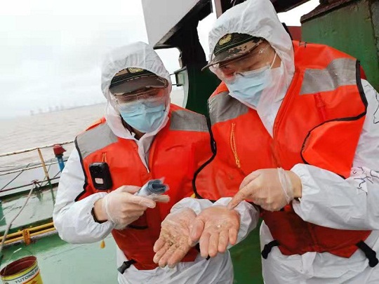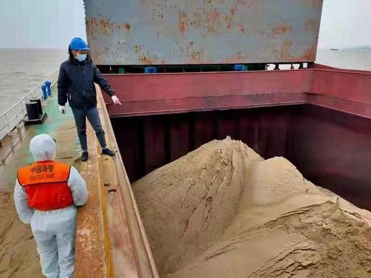 3月21日凌晨,該局巡邏艇在寶山附近海域巡邏時發(fā)現(xiàn)1艘船舶形跡可疑,該局執(zhí)法人員嚴格按照當前疫情防控要求,穿戴好防疫裝備,攜帶消毒設備前往該嫌疑船舶進行登臨檢查。經(jīng)査,該船舶貨艙內(nèi)滿載疑似海砂類砂石,砂石里混雜大量碎貝殼,隨后執(zhí)法人員在所有船艙依次提取樣品,均發(fā)現(xiàn)船舶所載貨物與貨運清單明顯不符,且相關(guān)人員無法提供合法齊全手續(xù)。目前,案件正在進一步偵辦中。