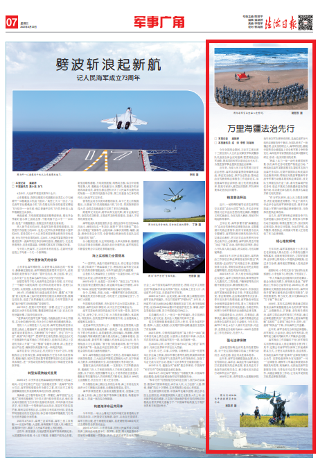 去年以來,海軍部署開展“海疆普法行”法治宣傳教育和法律服務活動,定期邀請中央政法委領導、院所專家教授為官兵專題輔導。海軍院校和訓練機構及時充實完善法治教材,把習近平法治思想列為學員必讀書目、必修課程。海軍部隊常態(tài)開展“送法下基層”活動,組織普法講師團、普法小分隊深入高山海島、碼頭場站,為官兵解疑釋惑。