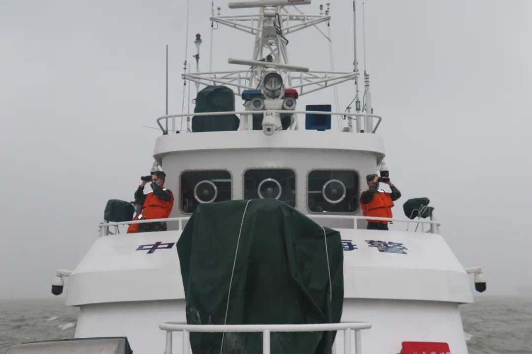 圖為上海海警局執(zhí)法艦艇了望哨正在觀(guān)察目標(biāo)船舶。劉雪龍 攝