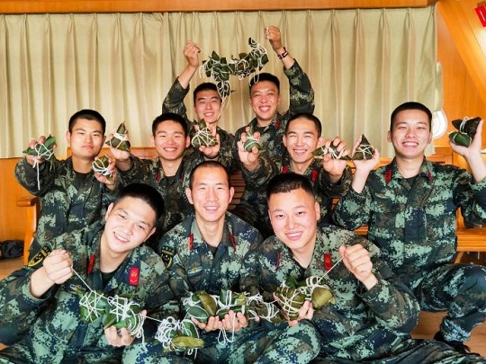 和媽媽撥通了視頻的執(zhí)法員小王高興地炫耀著手里的粽子:“媽媽,端午安康,不用擔(dān)心我,我在這邊一切都好,你看這是我自己包的粽子?!?/p>