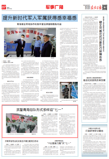 連日來,從昆侖山巔到三江源頭,從雪山草原到大漠戈壁,從機關(guān)營區(qū)到執(zhí)勤一線,武警青??傟牳骰鶎訂挝稽h員官兵通過各種形式慶?!捌咭弧?。