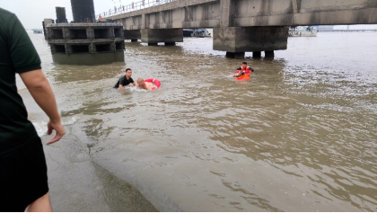 7月16日,上海海警局執(zhí)法人員在寶山區(qū)密山東路濱江森林公園附近成功救助2名落水游客。