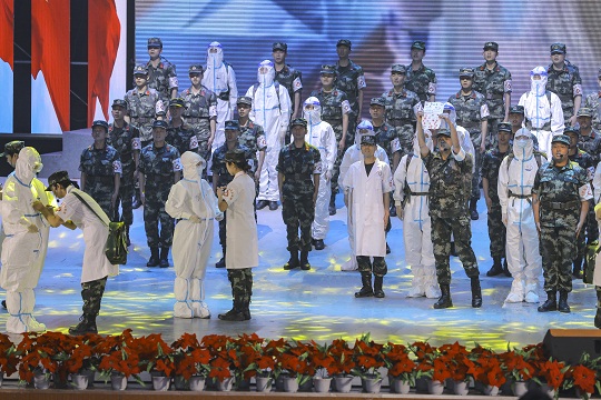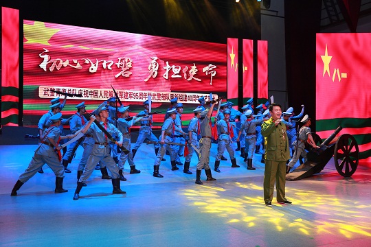 戰(zhàn)歌頌輝煌,奮進(jìn)強(qiáng)軍路。7月26日下午,武警青海總隊(duì)隆重舉辦“初心如磐,勇?lián)姑敝黝}文藝演出活動(dòng),熱烈慶祝中國(guó)人民解放軍建軍95周年和武警部隊(duì)重新組建40周年,基層官兵通過網(wǎng)絡(luò)視頻同步收看。整場(chǎng)演出深情謳歌了人民軍隊(duì)95年一路披荊斬棘、浴血奮戰(zhàn)的光輝歷程,生動(dòng)再現(xiàn)了武警部隊(duì)40年始終鐵心向黨、服務(wù)人民的激昂風(fēng)采。