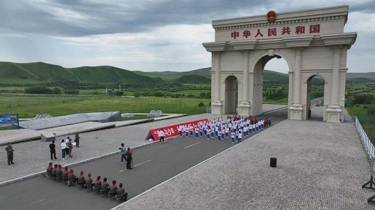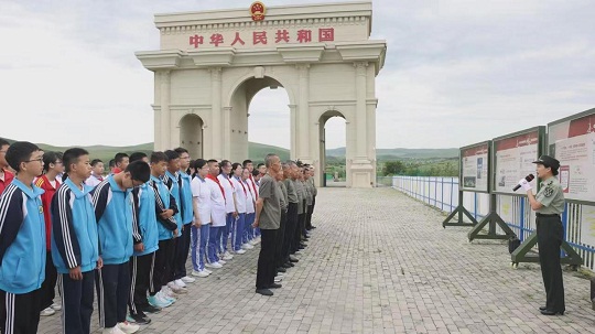 在阿爾山國門前,老兵王云剛正在給學(xué)生們講述他當(dāng)兵時的戰(zhàn)斗故事,“1969年4月,在武器運輸途中,我們遭到敵軍轟炸機(jī)轟炸,立即做出反擊……”講起那段保衛(wèi)祖國的光榮經(jīng)歷,他依舊很激動。