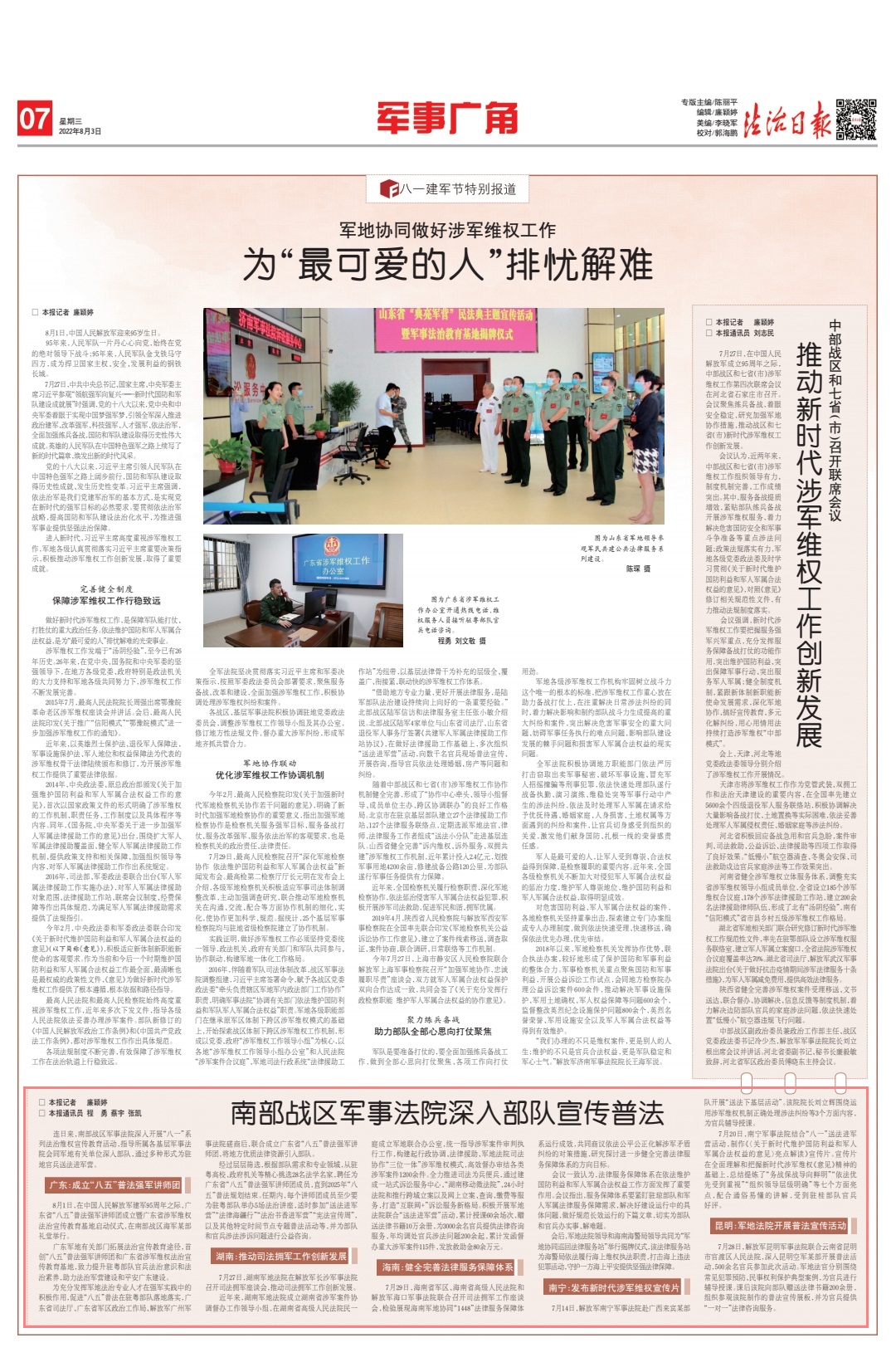 廣東軍地有關(guān)部門拓展法治宣傳教育途徑,首創(chuàng)“八五”普法強(qiáng)軍講師團(tuán)和廣東省涉軍維權(quán)法治宣傳教育基地,致力提升駐粵部隊(duì)官兵法治意識(shí)和法治素養(yǎng),助力法治軍營(yíng)建設(shè)和平安廣東建設(shè)。