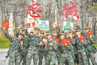 圖為實(shí)彈射擊取得好成績,新訓(xùn)骨干跟新兵們合影留念。王肸 攝