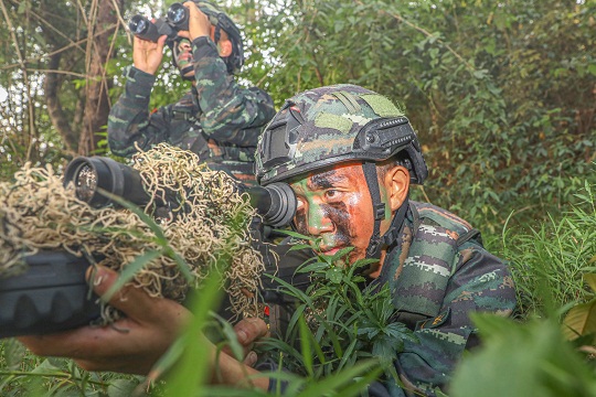 圖為狙擊小組占領(lǐng)制高點準(zhǔn)備對目標(biāo)實施精準(zhǔn)打擊。