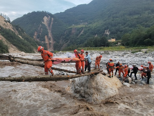 9月5日,四川省甘孜藏族自治州瀘定縣發(fā)生6.8級地震后,武警四川總隊機動第二支隊官兵趕赴現(xiàn)場展開救援。圖為官兵在瀘定縣磨西鎮(zhèn)磨子溝村搭建臨時木橋,轉移被困群眾。本報通訊員洪福樂 攝