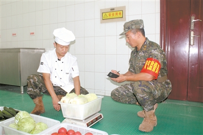 圖為高佳旭正在對伙食配送進行監(jiān)督。張廣彬 攝