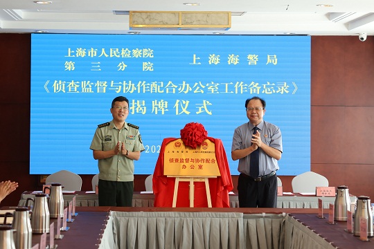 在與會單位見證下,上海市人民檢察院第三分院與上海海警局偵查監(jiān)督與協(xié)作配合辦公室正式成立并揭牌。這標(biāo)志著雙方執(zhí)法司法制約監(jiān)督體系更加規(guī)范高效,為今后各自履行法定職責(zé)翻開了新的篇章。