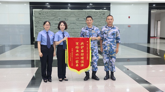 圖為某部感謝新會區(qū)檢察院民事支持起訴,向其贈送錦旗。