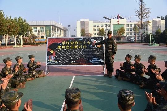 “黨的二十大報告強調(diào),全面加強練兵備戰(zhàn),提高人民軍隊打贏能力。作為一名基層官兵,我深感責任在肩,時不我待!”近日,在中隊訓(xùn)練場上,一場學(xué)習分享會正在進行,官兵們利用訓(xùn)練間隙認真學(xué)習黨的二十大報告。