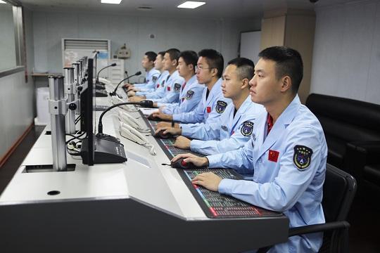 圖為損管集控室崗位人員實時監(jiān)控各機艙設(shè)備運行狀態(tài)。