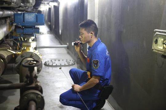 圖為動力系統(tǒng)船員對管隧進行巡檢。