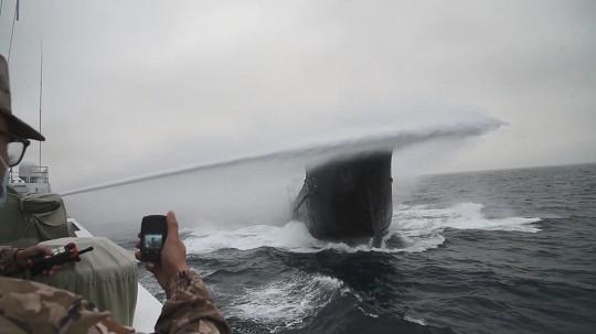圖為嫌疑船只企圖擺脫青州艦的追緝并向境外方向逃竄。