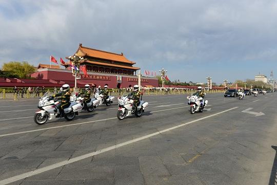第二屆“一帶一路”國際合作高峰論壇在北京舉行時,多達(dá)37國領(lǐng)導(dǎo)人來訪出席。從首都國際機(jī)場專機(jī)樓到釣魚臺國賓館,從人民大會堂到雁棲湖國際會都,60余公里的護(hù)衛(wèi)路線上,國賓護(hù)衛(wèi)中隊對每一處路段、每一道橋梁都了然于心。箭陣式飛馳、雁陣式流動,任務(wù)中用最高禮節(jié)歡迎世界貴賓,展示大國氣象。