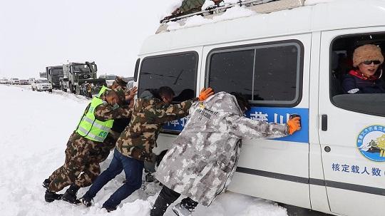 圖為武警第二機(jī)動總隊某支隊養(yǎng)護(hù)十七中隊官兵在海拔4658米的業(yè)拉山上執(zhí)行冬季清雪除冰任務(wù)。本報通訊員李貴華 攝