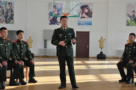 圖為武警部隊(duì)理論服務(wù)分隊(duì)成員、江蘇海警局執(zhí)法部偵察科科長王志國為武警吉林總隊(duì)白山支隊(duì)官兵宣講理論知識。徐笠桓 攝