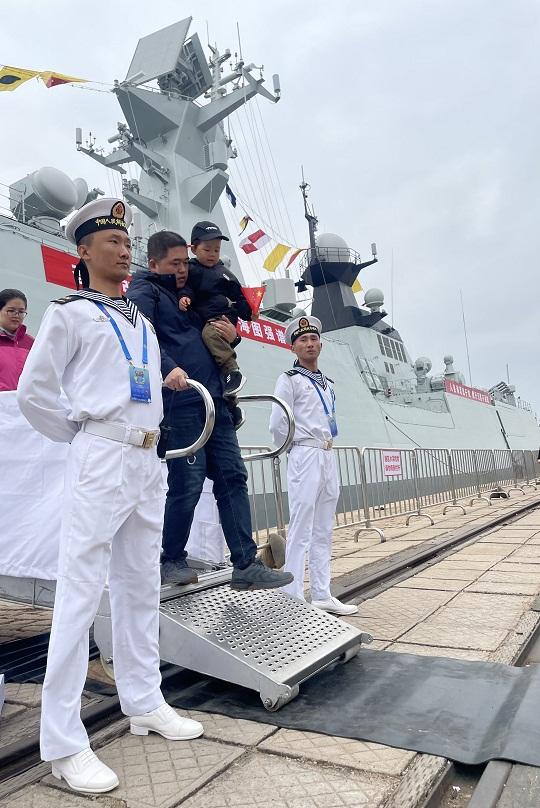 4月22日的青島港3號碼頭,前來參加“2023年海軍成立紀念日艦艇開放活動”的市民絡繹不絕。艦艇懸掛滿旗,以海軍最高禮儀迎接人民海軍成立74周年這個重要的日子。