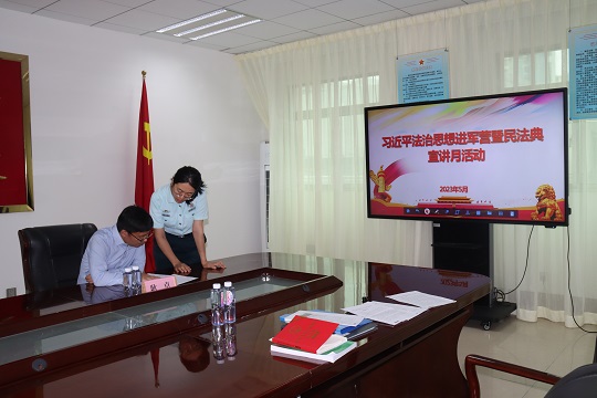 隨著第三個“民法典宣傳月”的到來,為更好地幫助駐粵部隊(duì)官兵深入學(xué)習(xí)民法典,解放軍廣州軍事法院聯(lián)合廣東省司法廳,利用軍地優(yōu)質(zhì)法律資源,精心組織“習(xí)近平法治思想進(jìn)軍營暨民法典宣傳月”活動。