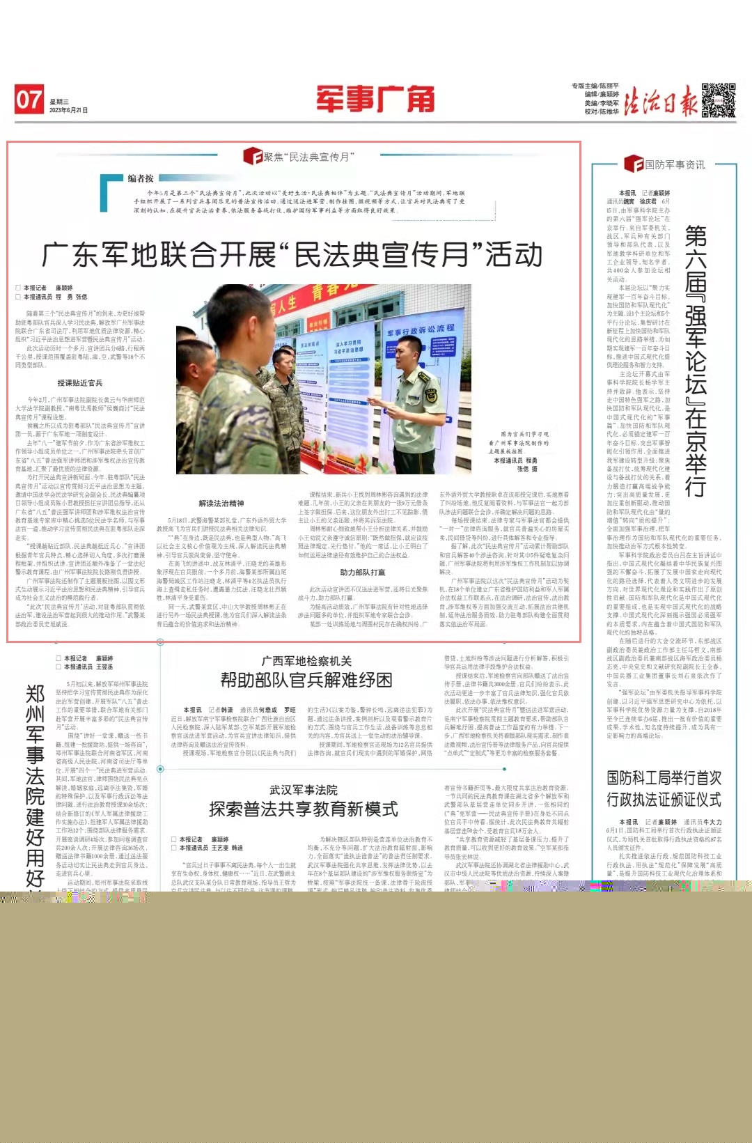 “此次‘民法典宣傳月’活動,對駐粵部隊(duì)貫徹依法治軍、建設(shè)法治軍營起到很大的推動作用。”武警某部政治委員史旭斌說。