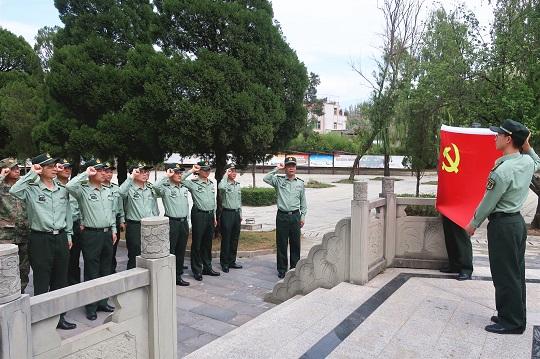 在丁佑君烈士陵園,“我宣誓,我志愿加入中國共產(chǎn)黨,擁護(hù)黨的綱領(lǐng),遵守黨的章程……”全體黨員在紀(jì)念碑前整齊列隊(duì),面對(duì)黨旗舉起右拳,莊嚴(yán)宣誓。