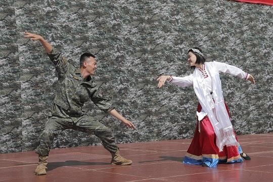 圖為官兵表演蒙古舞《白馬》。朱曉坷 攝
