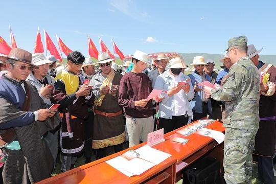 之后,官兵在現(xiàn)場開展了民族宗教政策宣講、醫(yī)療巡診、法律咨詢等活動(dòng),為農(nóng)牧民提供實(shí)用的綜合服務(wù)。部分官兵還和群眾圍坐在草地上,圍繞國防建設(shè)、增收致富、生態(tài)環(huán)保、雙擁共建等話題聊熱點(diǎn)、談心得、話感悟?!爸灰h和國家的好政策走,咱們的家園一定越來越美麗,咱們的日子一定越過越紅火?!蔽渚嗪?傟?duì)海北支隊(duì)政治委員葉華說。