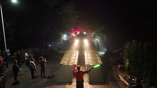 “在災(zāi)區(qū)百姓的滿(mǎn)懷期望中架設(shè),一次順利成功是我們唯一的選擇?!?8分鐘后,一座重型支援橋成功將兩岸連通。