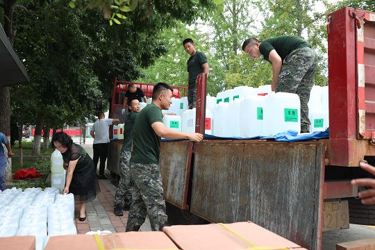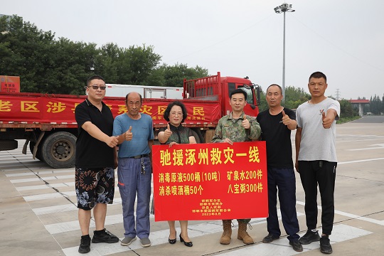 近日,因臺風(fēng)“杜蘇芮”引發(fā)暴雨洪澇災(zāi)害,全國愛國擁軍模范、邯鄲市愛國擁軍聯(lián)合會主席王愛英聯(lián)合河北省邯鄲市涉縣人武部,攜帶10噸消毒原液及生活物資緊急馳援河北省涿州市,于8月8日上午10時抵達(dá),為災(zāi)后重建工作提供援助。
