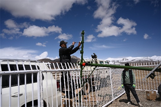 為完成“羌塘國(guó)家級(jí)自然保護(hù)區(qū)生態(tài)氣象監(jiān)測(cè)系統(tǒng)”項(xiàng)目建設(shè),航天新氣象公司的工作人員歷時(shí)兩個(gè)月,行駛兩萬(wàn)余公里,建設(shè)5套生態(tài)氣象觀測(cè)站和1套高原近地層通量觀測(cè)站,以航天科技保護(hù)這片高原凈土。