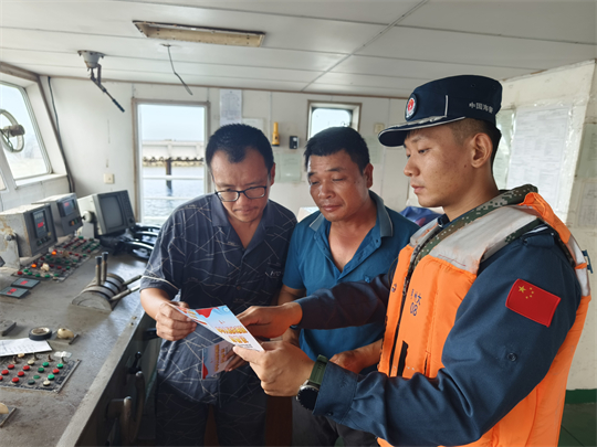 圖為海警執(zhí)法員開展防臺防汛宣傳。
