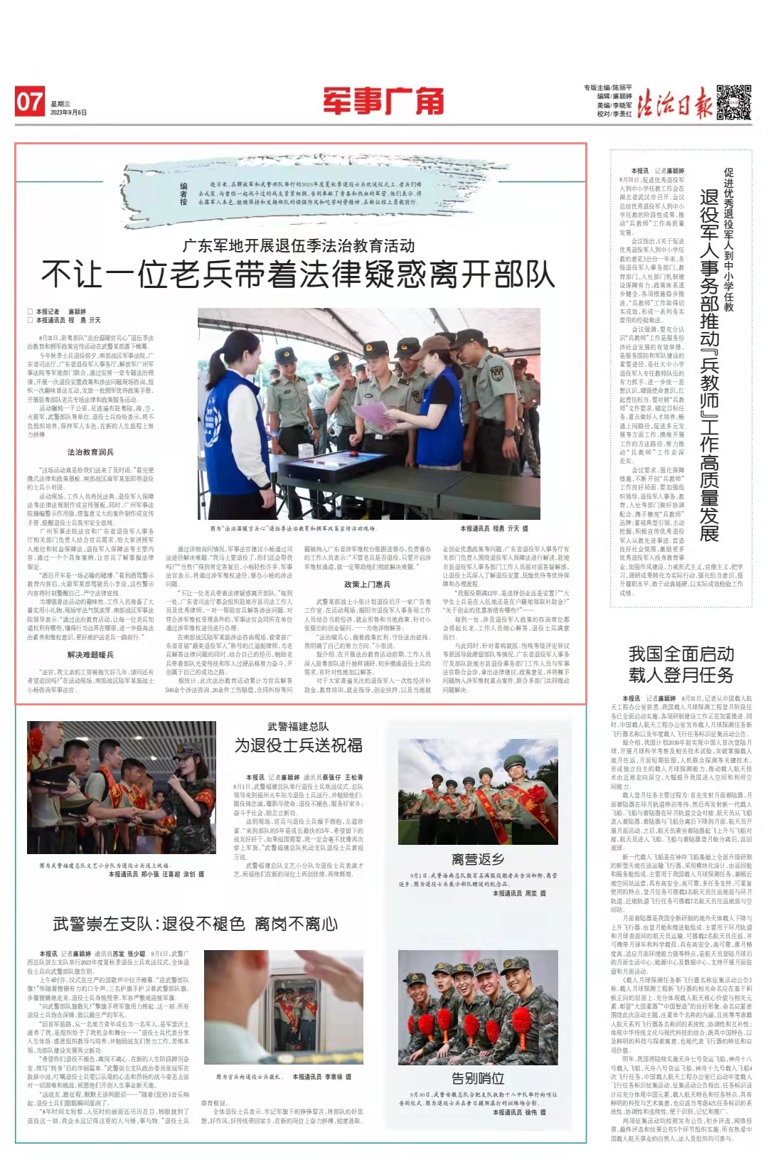 今年秋季士兵退役前夕,南部戰(zhàn)區(qū)軍事法院、廣東省司法廳、廣東省退役軍人事務(wù)廳、解放軍廣州軍事法院等軍地部門(mén)聯(lián)合,通過(guò)安排一堂專(zhuān)題法治授課、開(kāi)展一次退役安置政策和涉法問(wèn)題現(xiàn)場(chǎng)咨詢(xún)、組織一次趣味普法互動(dòng)、發(fā)放一批擁軍優(yōu)待政策手冊(cè),開(kāi)展駐粵部隊(duì)老兵專(zhuān)場(chǎng)法律和政策服務(wù)活動(dòng)。