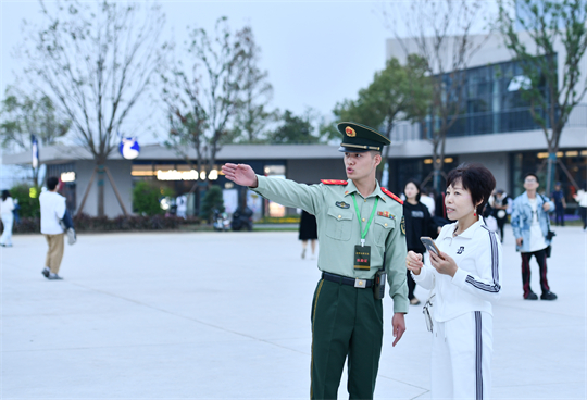 圖為9月26日,在第十四屆中國(合肥)國際園林博覽會(huì)現(xiàn)場,武警執(zhí)勤官兵為游客提供便民服務(wù)。