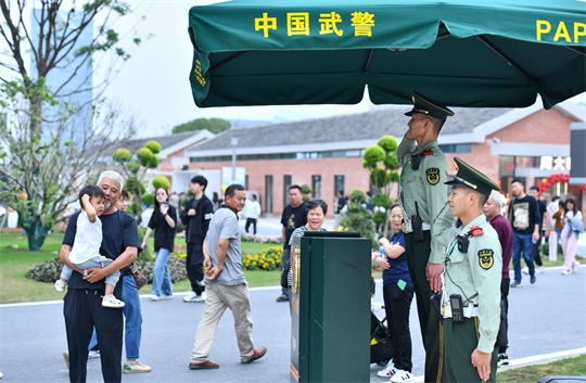 武警合肥支隊(duì)精心選派執(zhí)勤官兵,采取定點(diǎn)警戒與武裝巡邏相結(jié)合的方式維護(hù)現(xiàn)場秩序,熱情主動(dòng)為游客提供便民服務(wù),成為園博會(huì)上一道靚麗的風(fēng)景線。