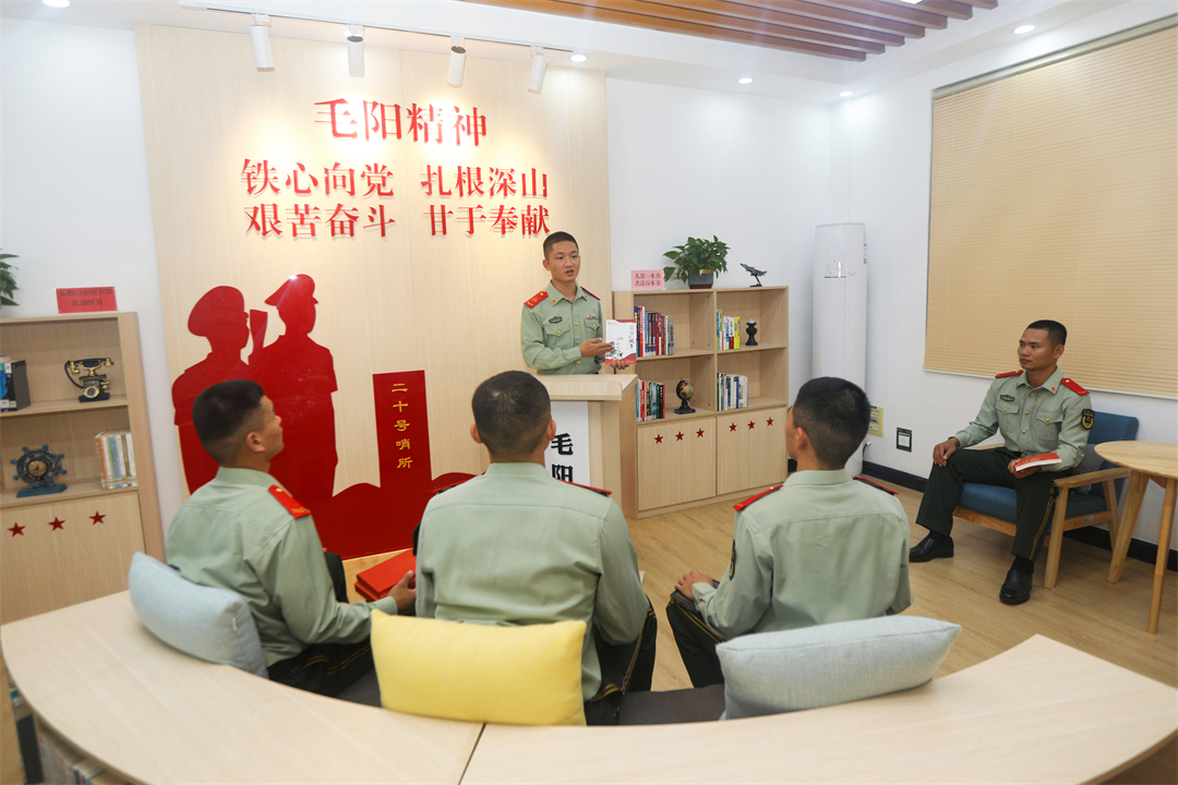 執(zhí)勤六中隊(duì)現(xiàn)任指導(dǎo)員金生清楚記得,今年3月到中隊(duì)任職時(shí)參加黨支部會(huì)議的場(chǎng)景。支部成員沒進(jìn)會(huì)議室,而是來到五指山革命根據(jù)地紀(jì)念園?!叭温毟刹恐挥蓄I(lǐng)會(huì)艱苦奮斗、自立自強(qiáng)、不屈不撓的瓊崖精神內(nèi)涵,才能在工作中捋清思路、抓準(zhǔn)重點(diǎn)……”時(shí)任指導(dǎo)員楊興科說。