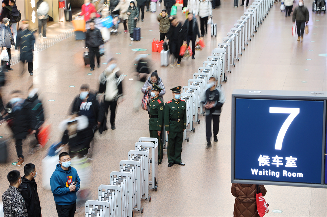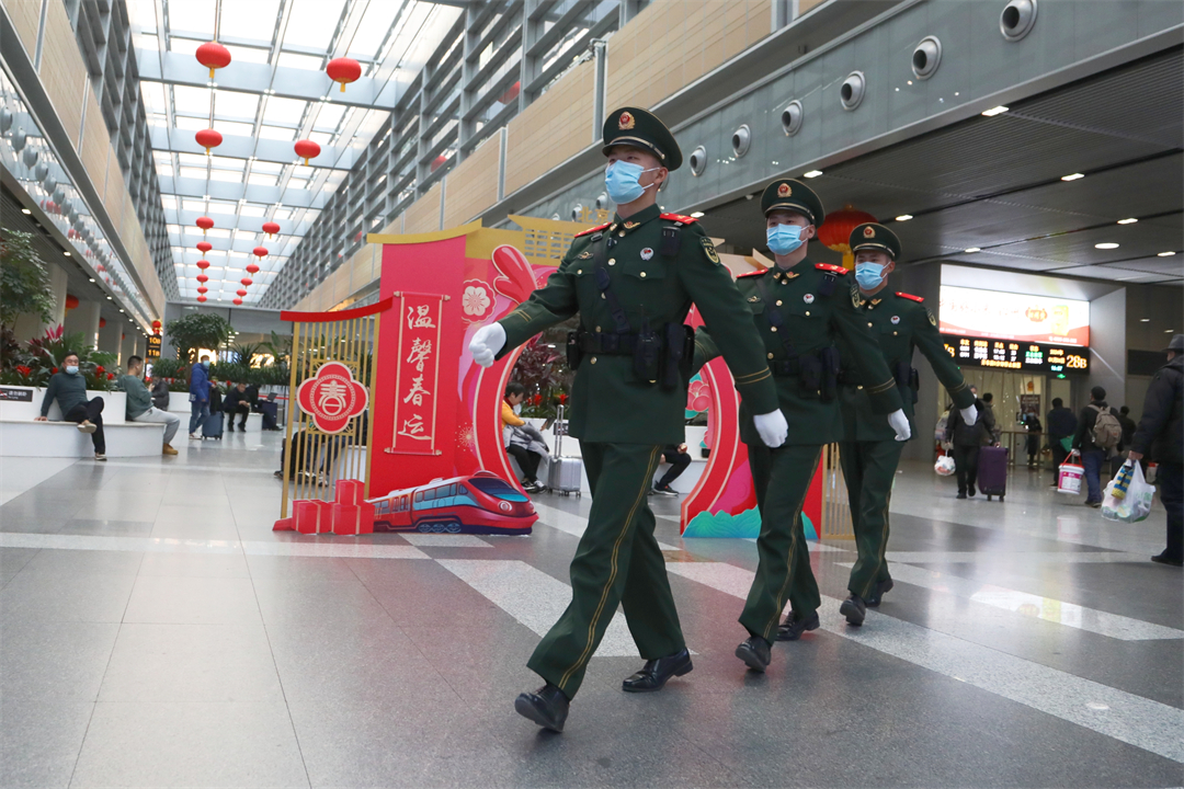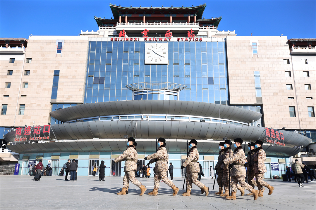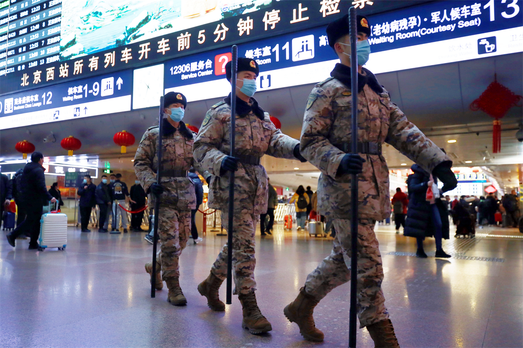 1月26日,全國春運(yùn)正式拉開帷幕。擔(dān)負(fù)北京西站守衛(wèi)任務(wù)和北京豐臺(tái)站定點(diǎn)警戒任務(wù)的武警北京總隊(duì)執(zhí)勤第六支隊(duì)官兵堅(jiān)守執(zhí)勤戰(zhàn)位,熱心為群眾提供幫助,以實(shí)際行動(dòng)溫暖守護(hù)旅客歸鄉(xiāng)路。