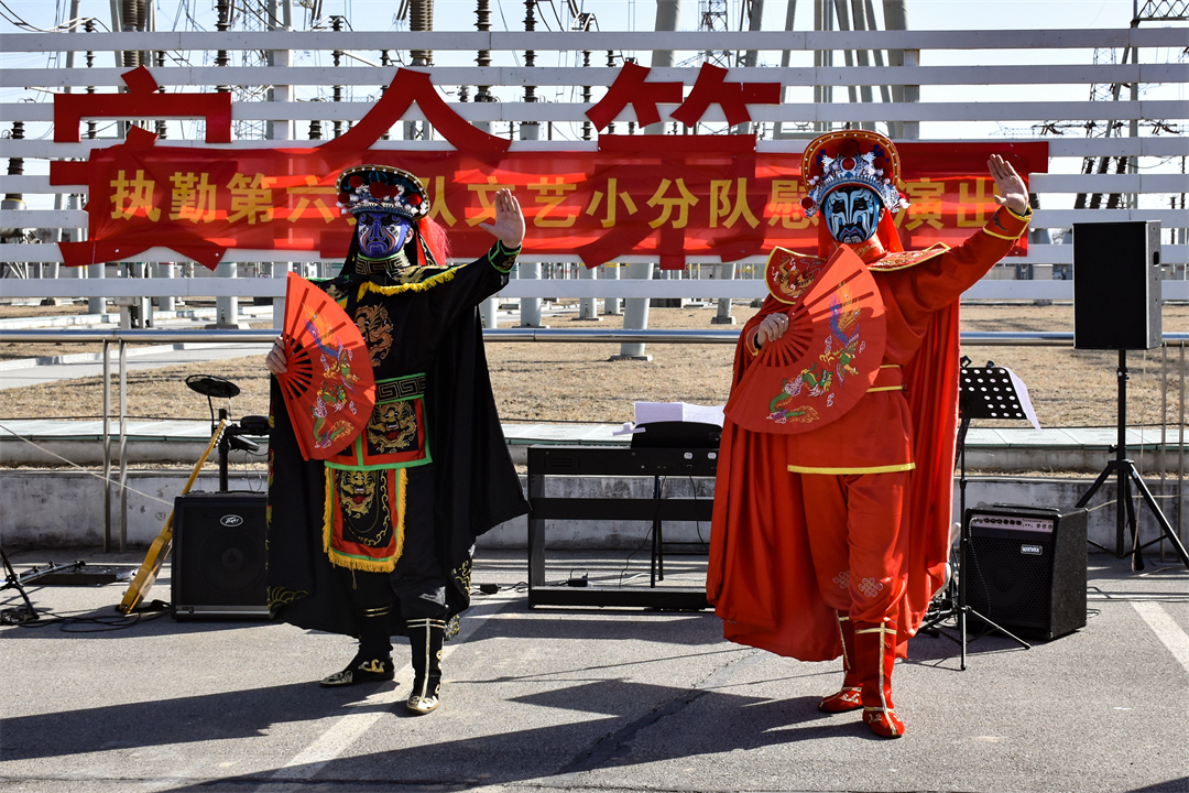 圖為文藝小分隊(duì)來(lái)到任務(wù)一線慰問(wèn)表演。