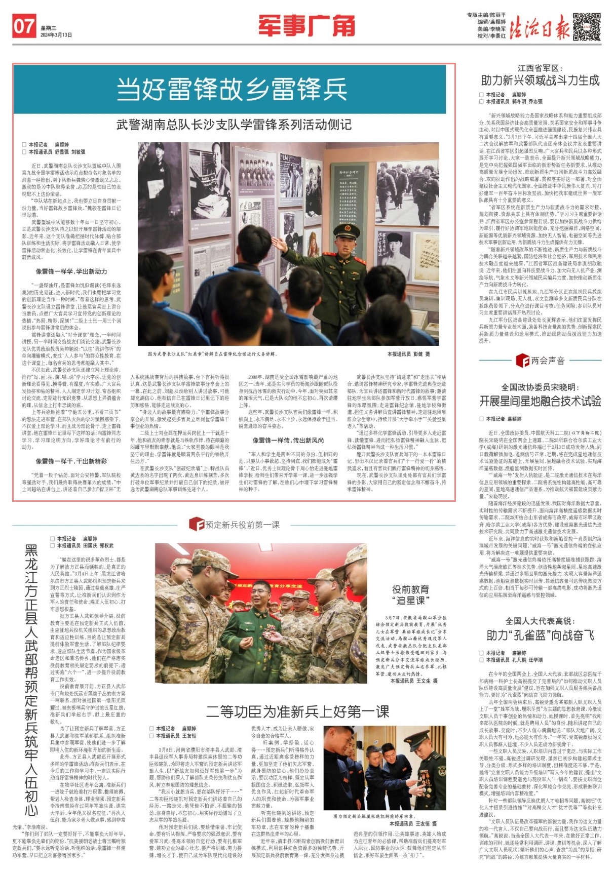 現(xiàn)在,武警長沙支隊里處處都有官兵們學雷鋒的身影,大家用自己的堅定信念和不懈奮斗,傳承雷鋒精神。