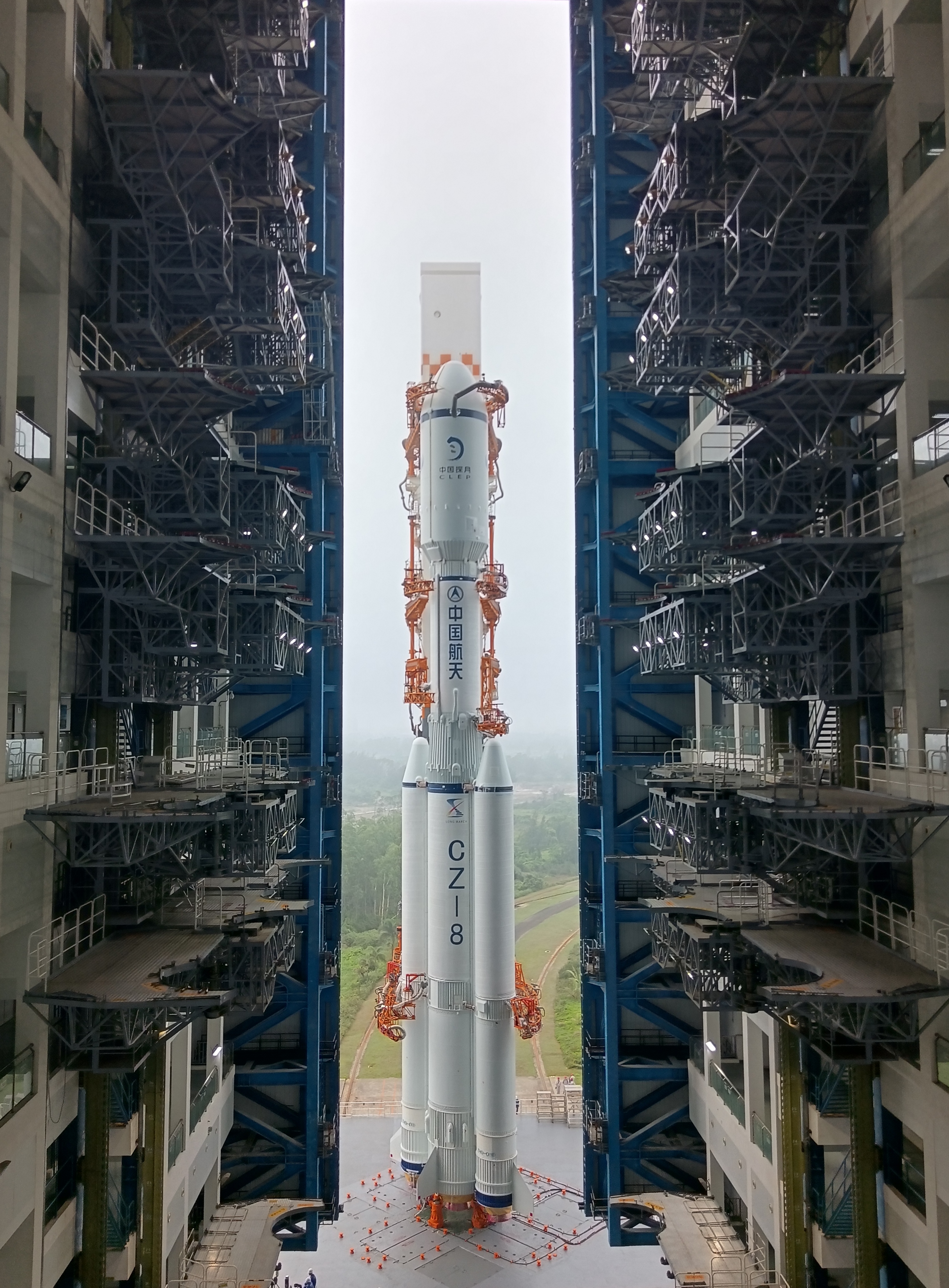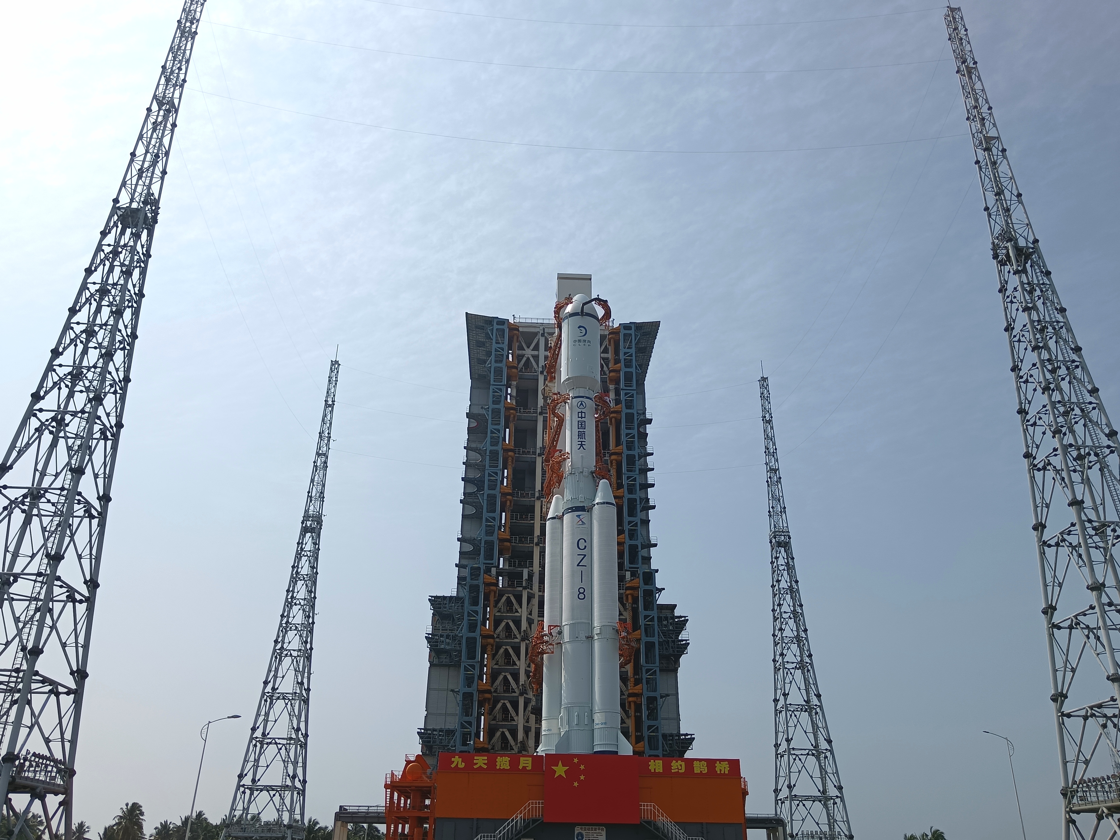 3月17日,探月工程四期鵲橋二號中繼星和長征八號遙三運載火箭在中國文昌航天發(fā)射場完成技術區(qū)相關工作,星箭組合體垂直轉運至發(fā)射區(qū),計劃于近日擇機實施發(fā)射。鵲橋二號中繼星、長征八號遙三運載火箭于2月運抵發(fā)射場后,陸續(xù)完成總裝、測試等各項準備工作。