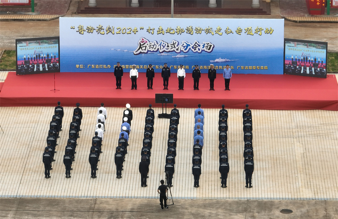 為強(qiáng)化轄區(qū)治安管控,縱深嚴(yán)打走私違法犯罪,維護(hù)國家政治經(jīng)濟(jì)和海上安全穩(wěn)定,3月27日,廣東海警局在廣東省深圳市舉行“粵海亮劍2024”打擊海上走私專項(xiàng)行動啟動儀式,在湛江和汕頭分別設(shè)置分會場。儀式還邀請了廣東省打私辦、海關(guān)總署廣東分署、廣東海事局、廣東省海洋綜合執(zhí)法總隊、廣東省煙草專賣局及地市等相關(guān)職能單位出席儀式。